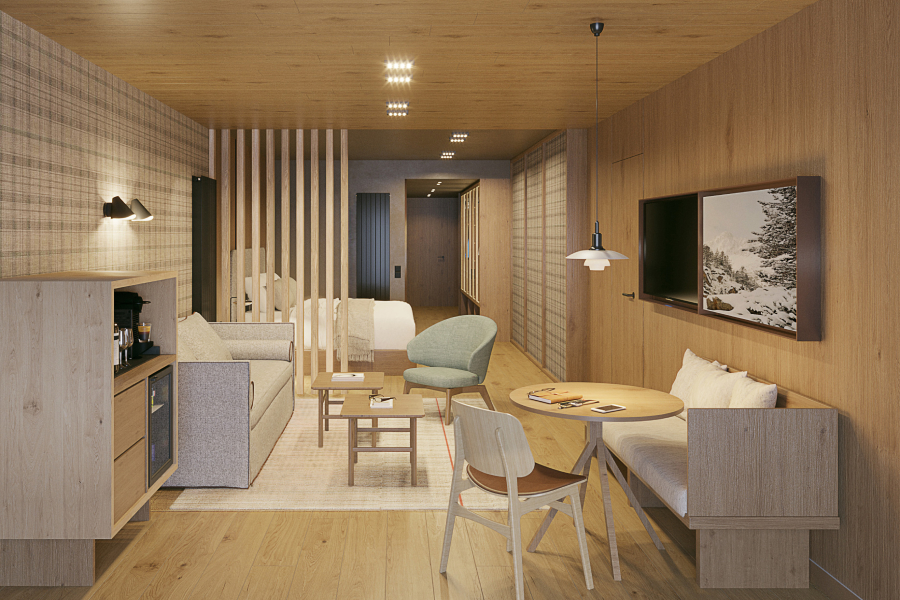 Àmplies habitacions de 50 m2 ideals per a famílies amb capacitat màxima fins a 4 persones. Tenen vistes a les muntanyes i dos espais diferenciats: un saló amb sofà llit i un dormitori. També disposen d’un bany privat, articles de bany, assecador de cabell, mini bar, caixa forta, 1 televisor per satèl·lit, telèfon y servei d’habitacions 24/7 (únicament temporada d'hivern).